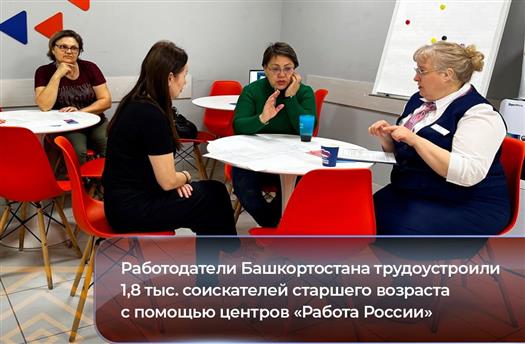Работодатели Башкортостана трудоустроили 1,8 тыс. соискателей старшего возраста с помощью центров "Работа России", сообщает пресс-служба правительства республики.
