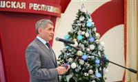 Глава Чувашии Олег Николаев снял с елки три шара с желаниями детишек. Новогоднее дерево было украшено открытками в виде новогодних шариков с написанными в них мечтами детей. Руководитель региона исполнит их.