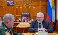 Губернатор Кировской области Александр Соколов встретился с временно исполняющим обязанности командира войсковой части в нашей области полковником Александром Тутулиным.