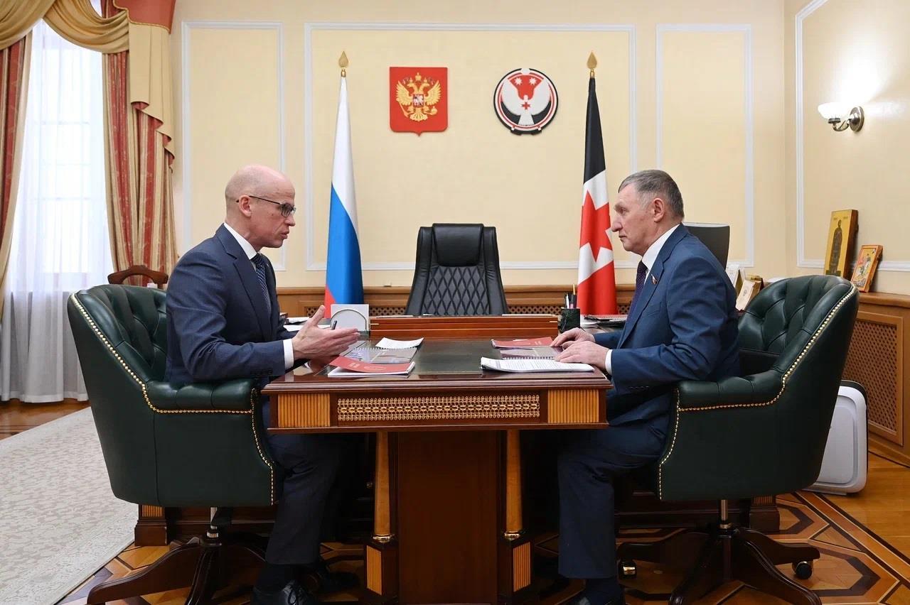 Глава Удмуртии Александр Бречалов провел рабочую встречу с Председателем Государственного Совета республики Владимиром Невоструевым. Они рассмотрели приоритетные направления социально-экономического развития региона на 2026 год, а также ключевые планы законодательного органа.