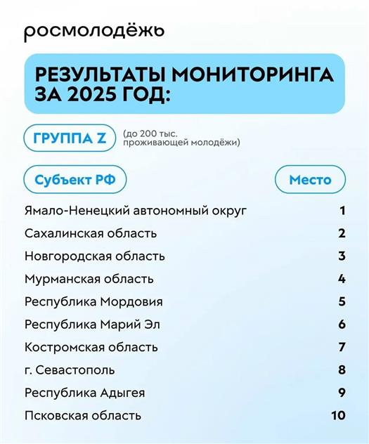 По итогам 2025 года республика заняла шестое место в рейтинге регионов по реализации молодежной политики в своей категории.