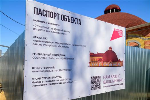 В ноябре 2025 года на прямой линии Главе республики был задан вопрос о нехватке мест в Медведевской музыкальной школе. Юрий Зайцев дал поручение рассмотреть возможность создания Детской школы искусств в поселке на базе недостроенного цирка, возведение которого началось в 2013 году. Объект был включен в национальный проект "Семья" и в марте 2026 года началось строительство. Общий объем финансирования составляет более 584 миллионов рублей, из них большая часть — средства федерального бюджета. Срок ввода объекта по контракту — до 1 декабря 2027 года.